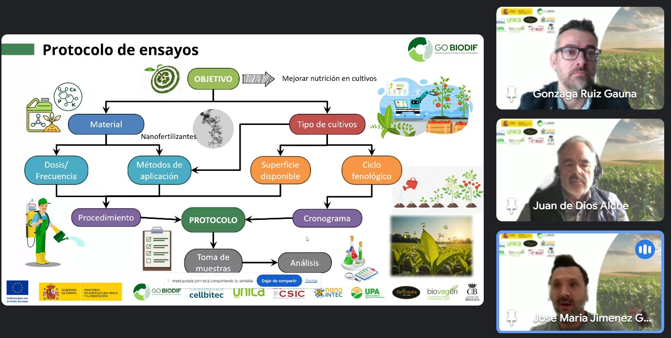 El pasado 31 de marzo de 2025 se celebró el «I WEBINAR GO BIODIF: biofuncionalización de cultivos estratégicos para la mejora de su competitividad en el mercado«, un evento dedicado a la presentación de este proyecto innovador y sus miembros.